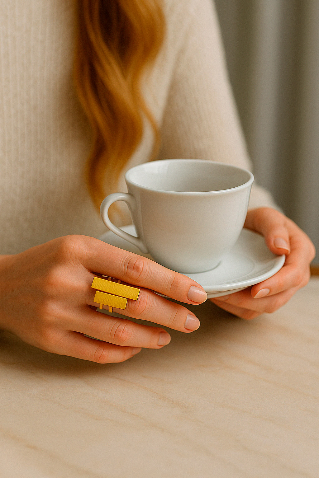 Com inspiração no minimalismo contemporâneo, o Anel Barra Dupla Irregular traz sofisticação sem esforço para os seus momentos. O design assimétrico com linhas retas confere um visual marcante, moderno e ao mesmo tempo versátil — ideal para quem valoriza peças únicas com identidade.