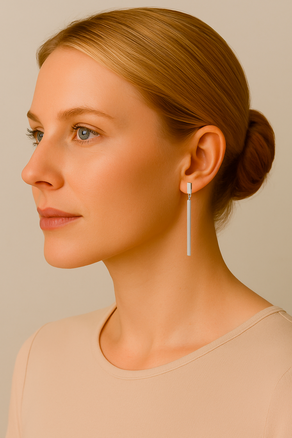 Um toque de elegância que alonga e valoriza o rosto com naturalidade. O Brinco Barra Única Articulado é a escolha perfeita para quem busca um visual sofisticado sem excessos. Seu design minimalista se destaca pelo movimento sutil da barra e pelo acabamento escovado e fosco, que confere um brilho discreto e atemporal.