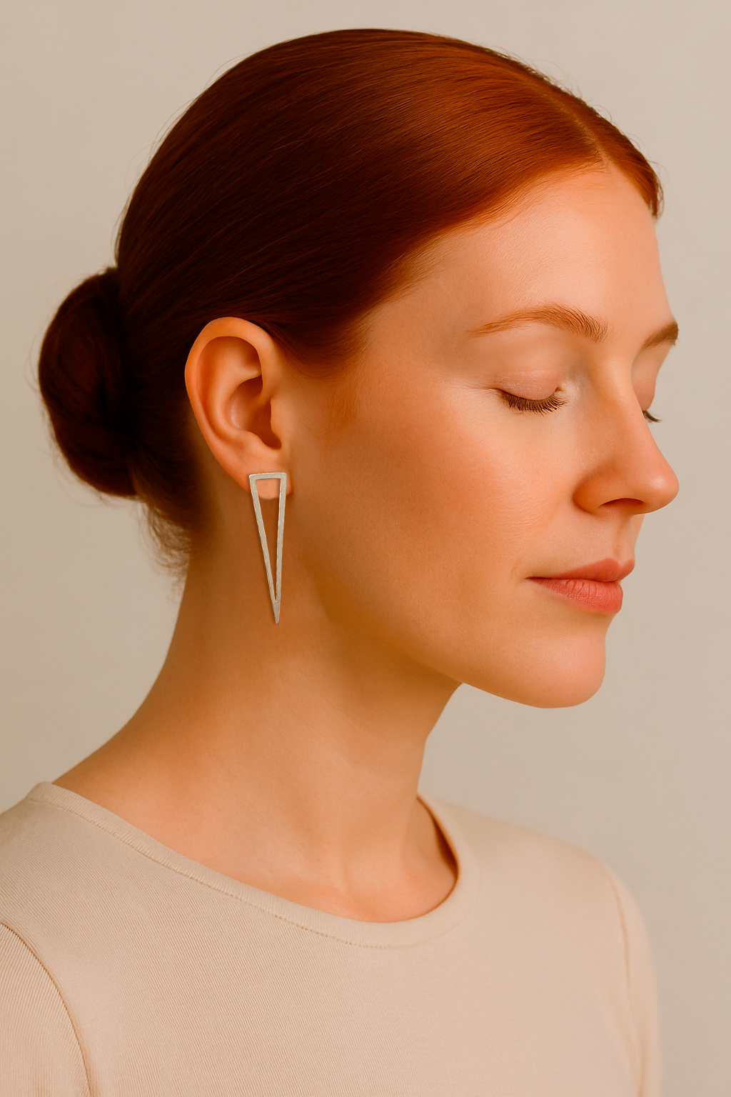 O Brinco Triângulo Invertido é uma peça de presença leve e marcante. Seu formato alongado e geométrico traz um toque de ousadia elegante, perfeito para quem busca autenticidade sem abrir mão da sofisticação.
