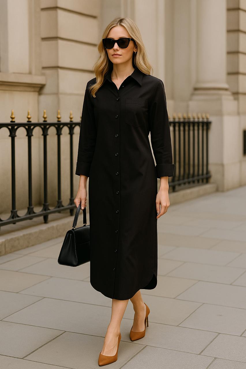 Uma peça que abraça com leveza e veste com intenção. Essa chemise midi foi criada para durar — em beleza, em propósito, em versatilidade.