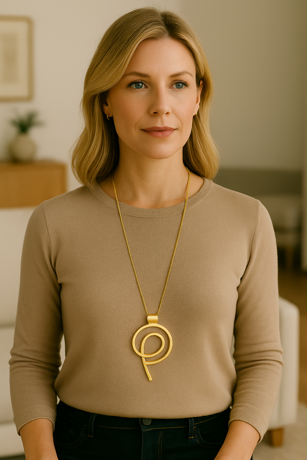 O Colar @ combina curvas marcantes com um design leve e orgânico que emoldura o colo com elegância — seja usado curto, rente ao pescoço, ou longo, ultrapassando o busto. A corrente regulável permite essa versatilidade com facilidade, se adaptando ao seu estilo e à ocasião.