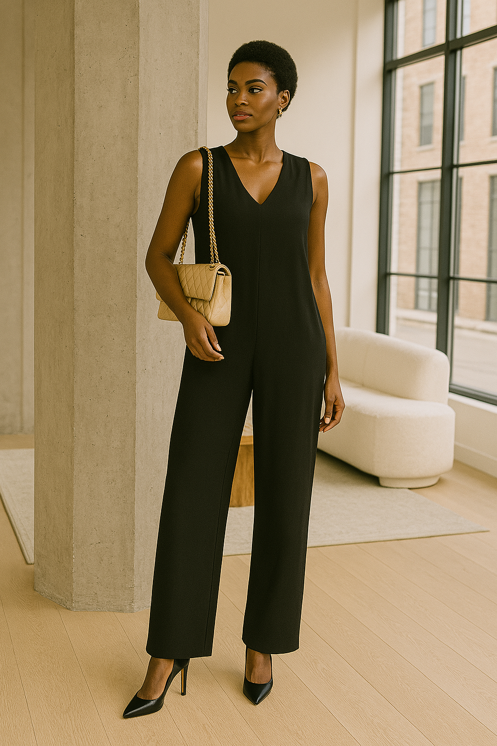 Elegância sem esforço. Esse macacão pantalona foi feito para mulheres que já entenderam que o essencial não precisa de excesso — só de presença.